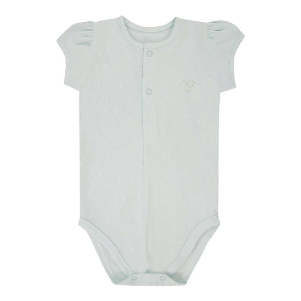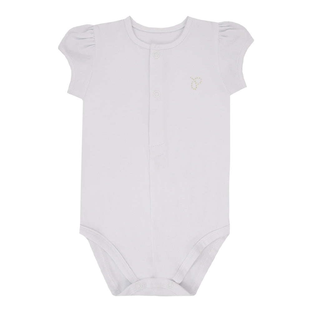 Body meia manga da linha Colors em malha conforto macia, modelagem tradicional com mangas copinho arredondadas, abertura com botão de pressão e detalhe de strass personalizado. Ideal para o verão.