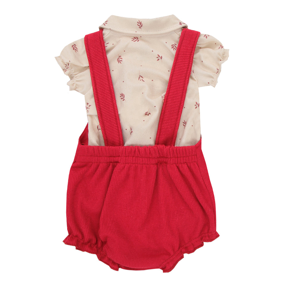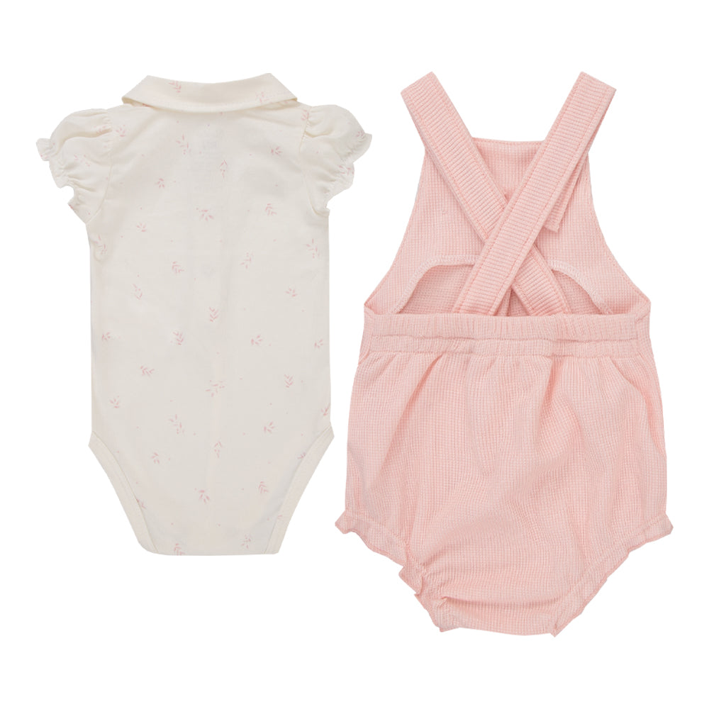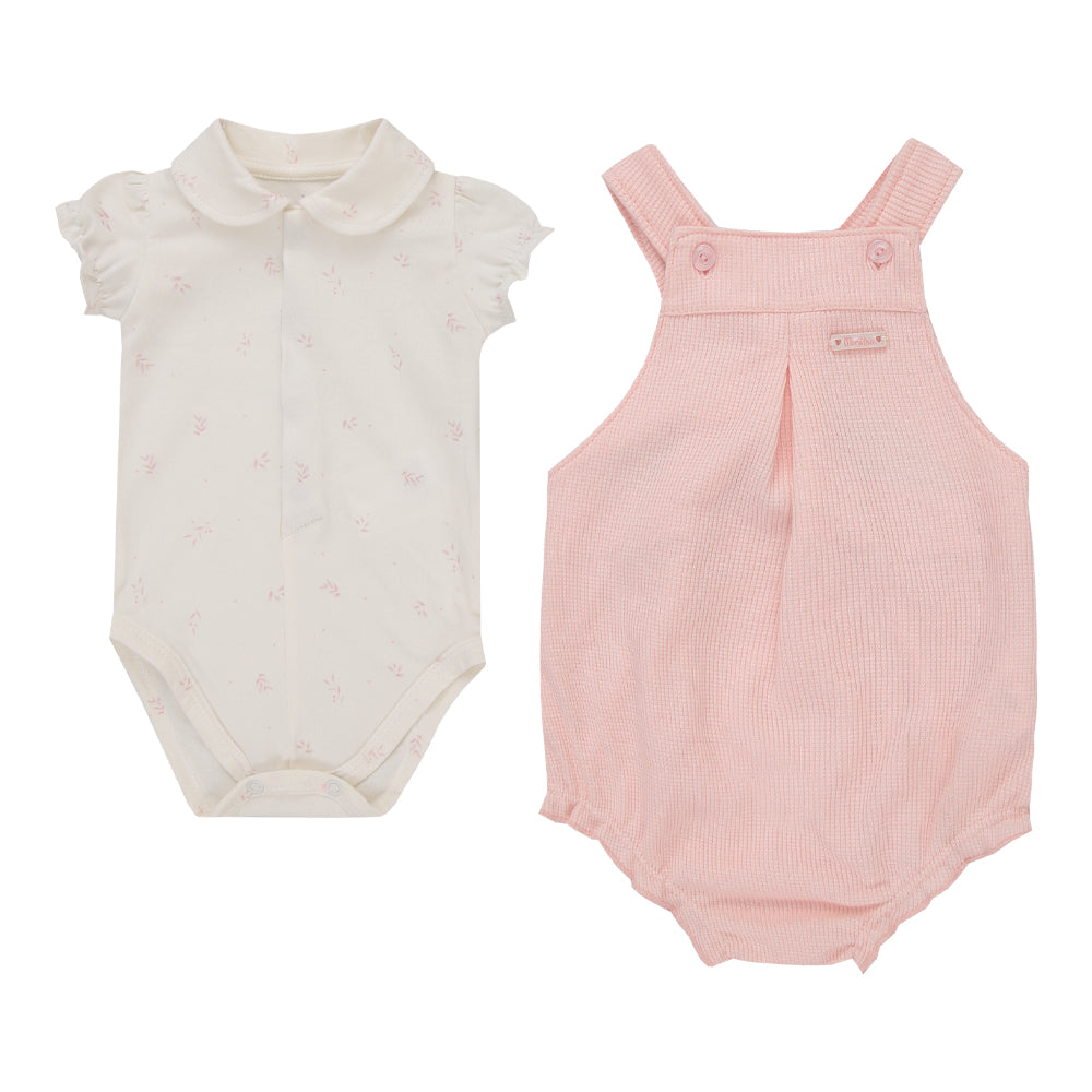 Conjunto Baby Curto Jardineira Quadriculada com Alça Regulável e Body Estampado com Manguinhas Franzidas Paraiso 18655