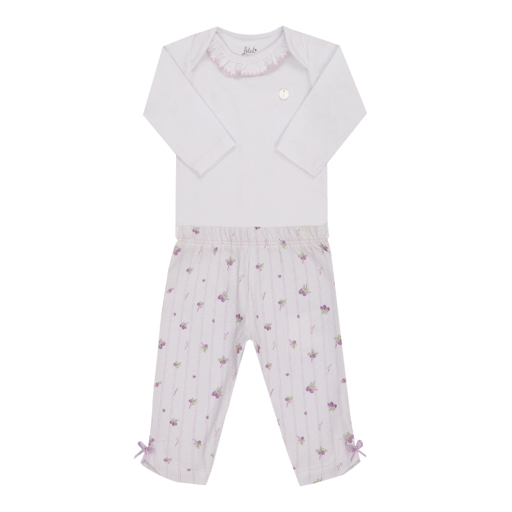 O conjunto Baby longo Letut é perfeito para mamães que buscam delicadeza e conforto em cada detalhe. Confeccionado em malha conforto macia e suave, o body conta com gola expansível, facilitando o vestir, e um encantador babadinho no contorno da gola em acabamento picueta, com efeito crochê. Possui ainda botão de pressão no fundo e plaquinha personalizada da marca.