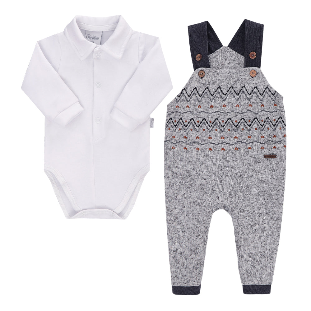O Conjunto Baby Longo Masculino Paraiso combina aconchego e sofisticação para os dias mais frios, proporcionando um look clássico e arrumadinho para seu bebê.