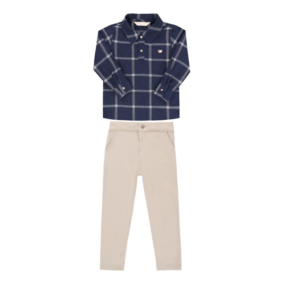 Conjunto Bata Xadrez Taos Flat com Gola Clássica e Calça Molecotton com Bolsos Funcionais Paraiso