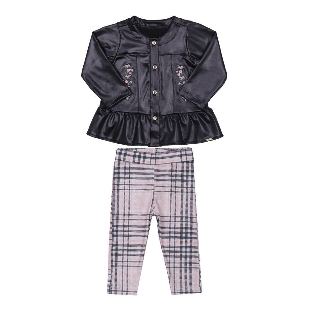 Conjunto Blusa Manga Longa Malha Cirré Felpada com Bordado e Calça Ultramicro Thermo Felpada Paraiso 16193