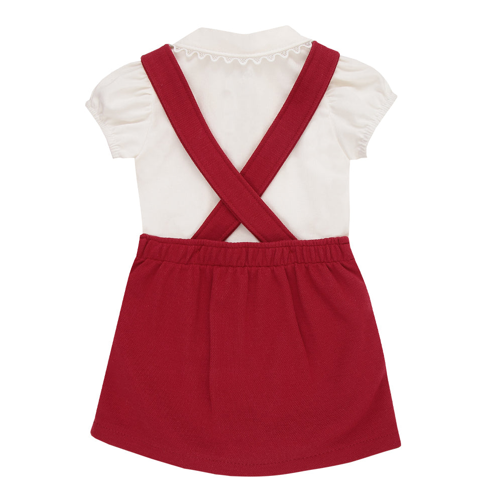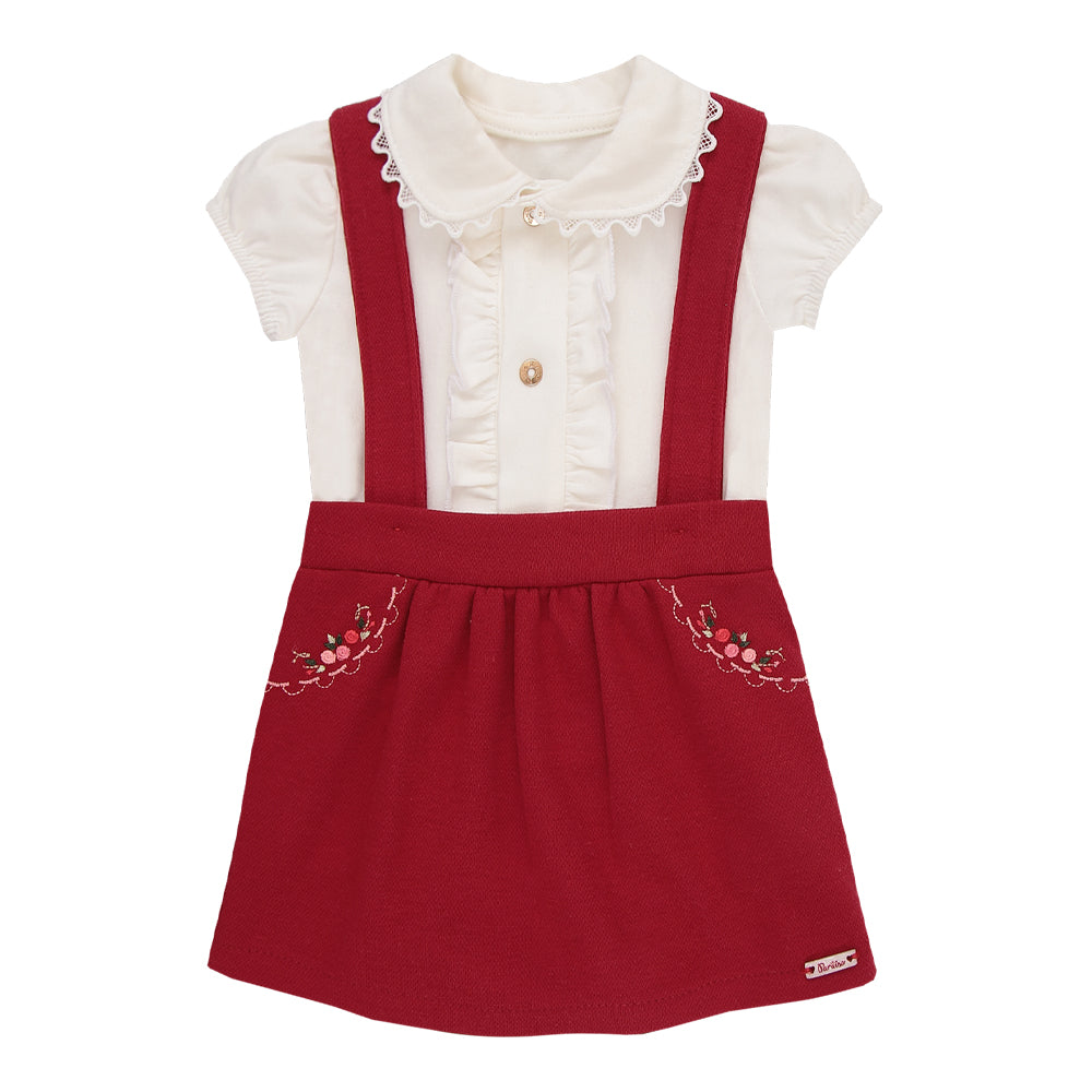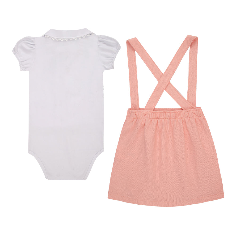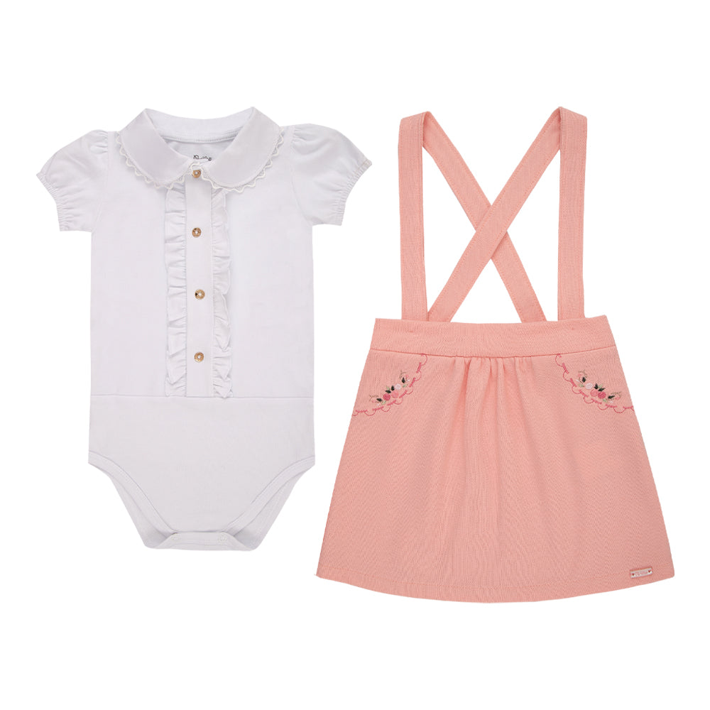 Conjunto Body Meia Manga com Gola Rendado e Salopete Bordada com Alça Regulável Sofisticada Paraiso 18712