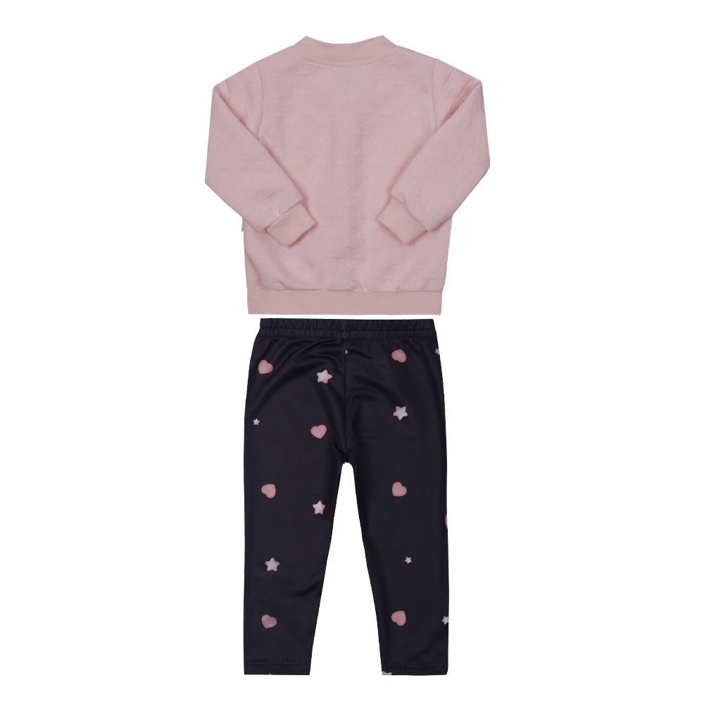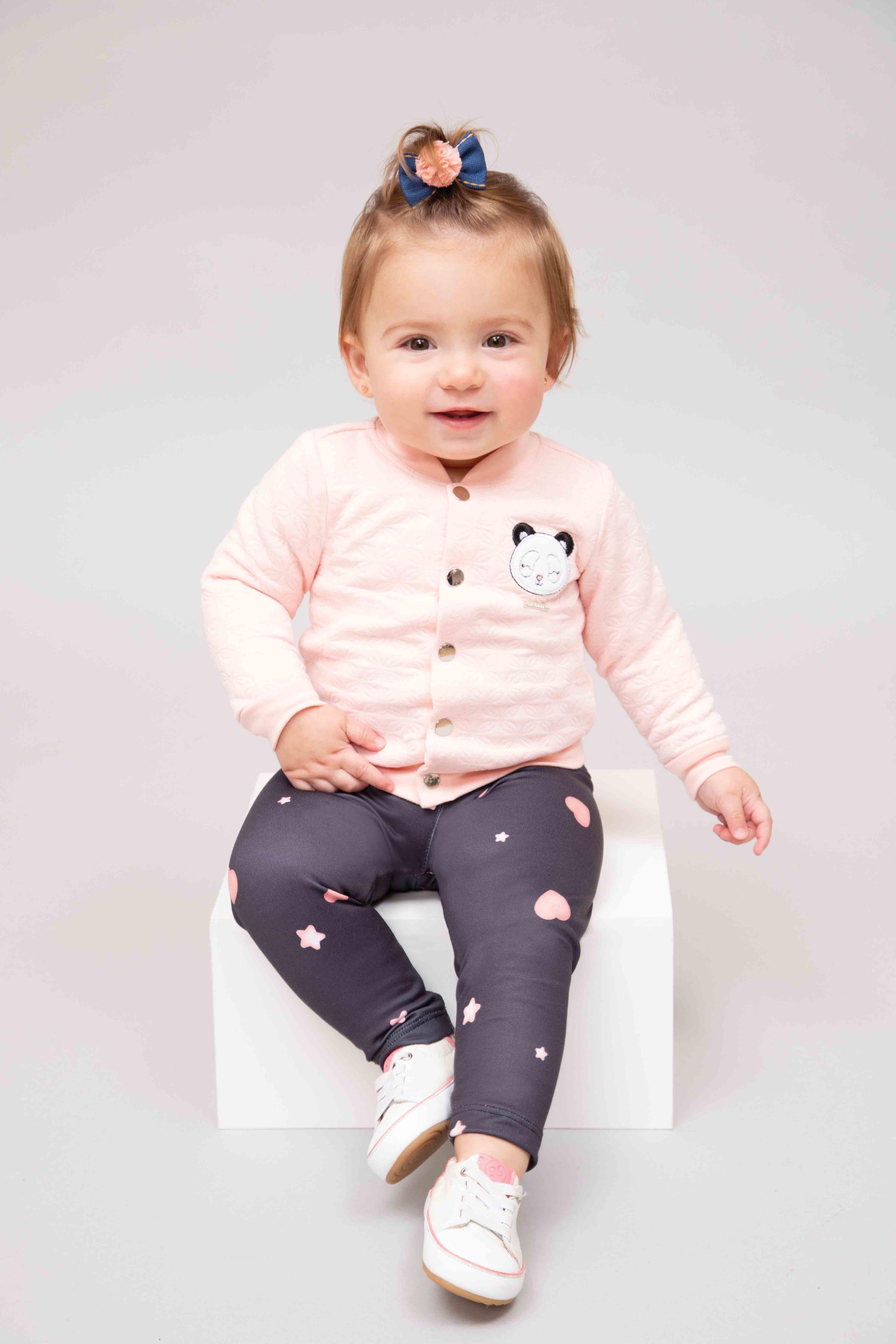 Este conjunto, em uma suave cor rosa pessego, é a combinação ideal de funcionalidade e moda infantil, tornando-se uma peça indispensável no guarda-roupa de inverno da sua filha.