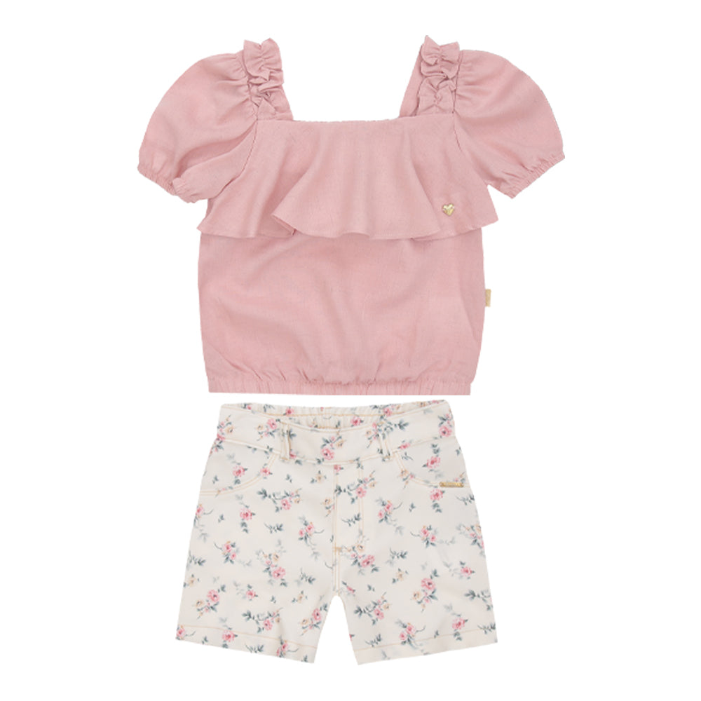 Conjunto Kids Verão Feminino Com Blusa e Shorts Paraiso 17149