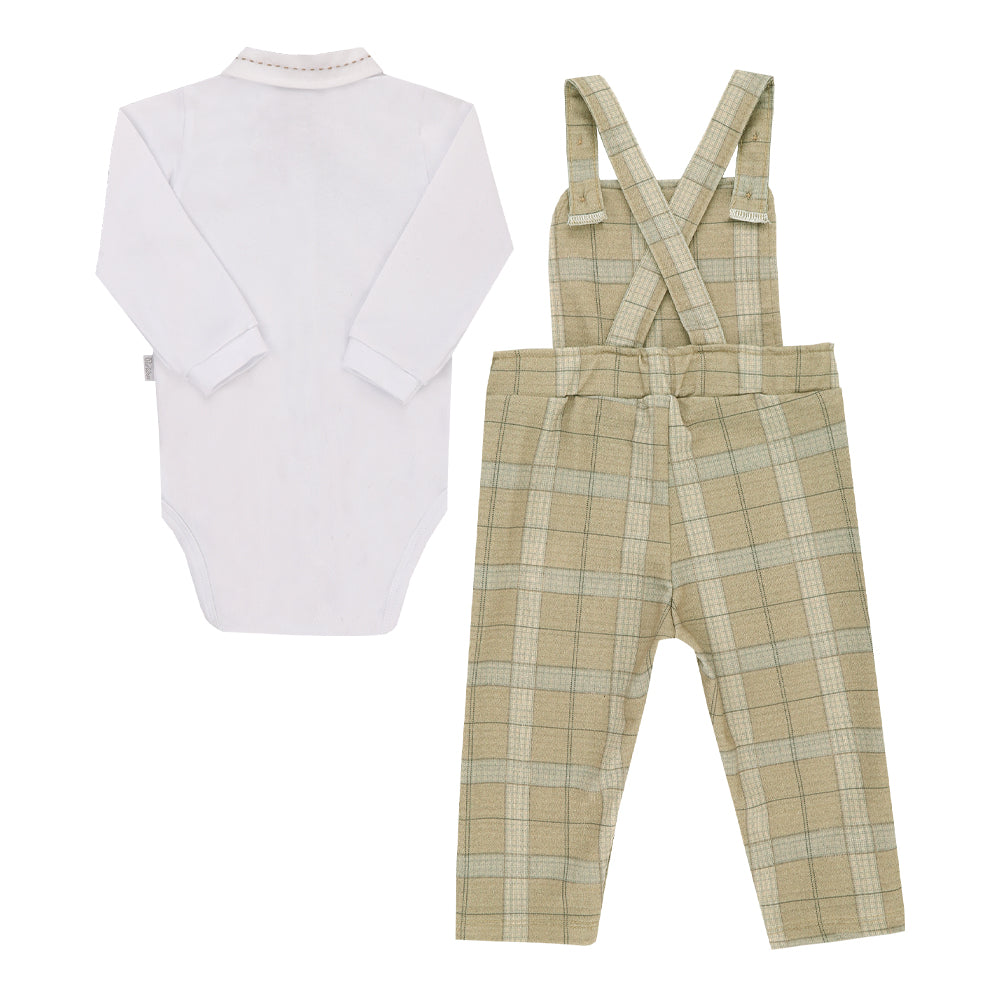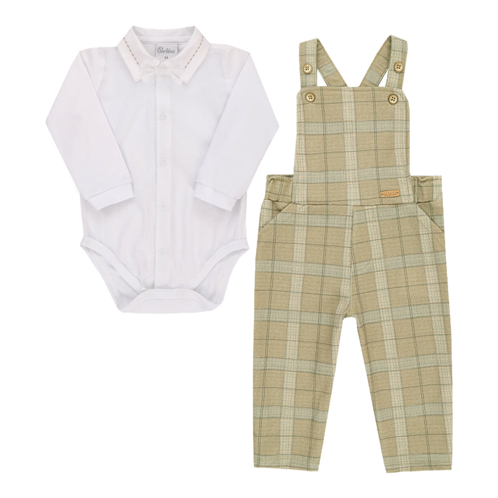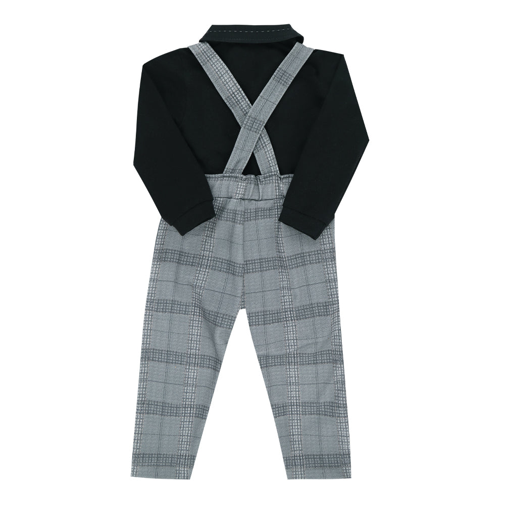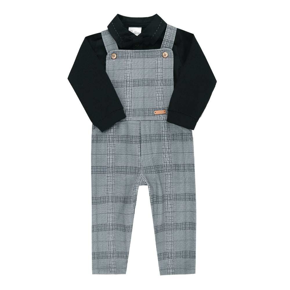 Conjunto Macacão Jardineira Xadrez Leve com Body Manga Longa e Gravata Removível Paraiso 17829