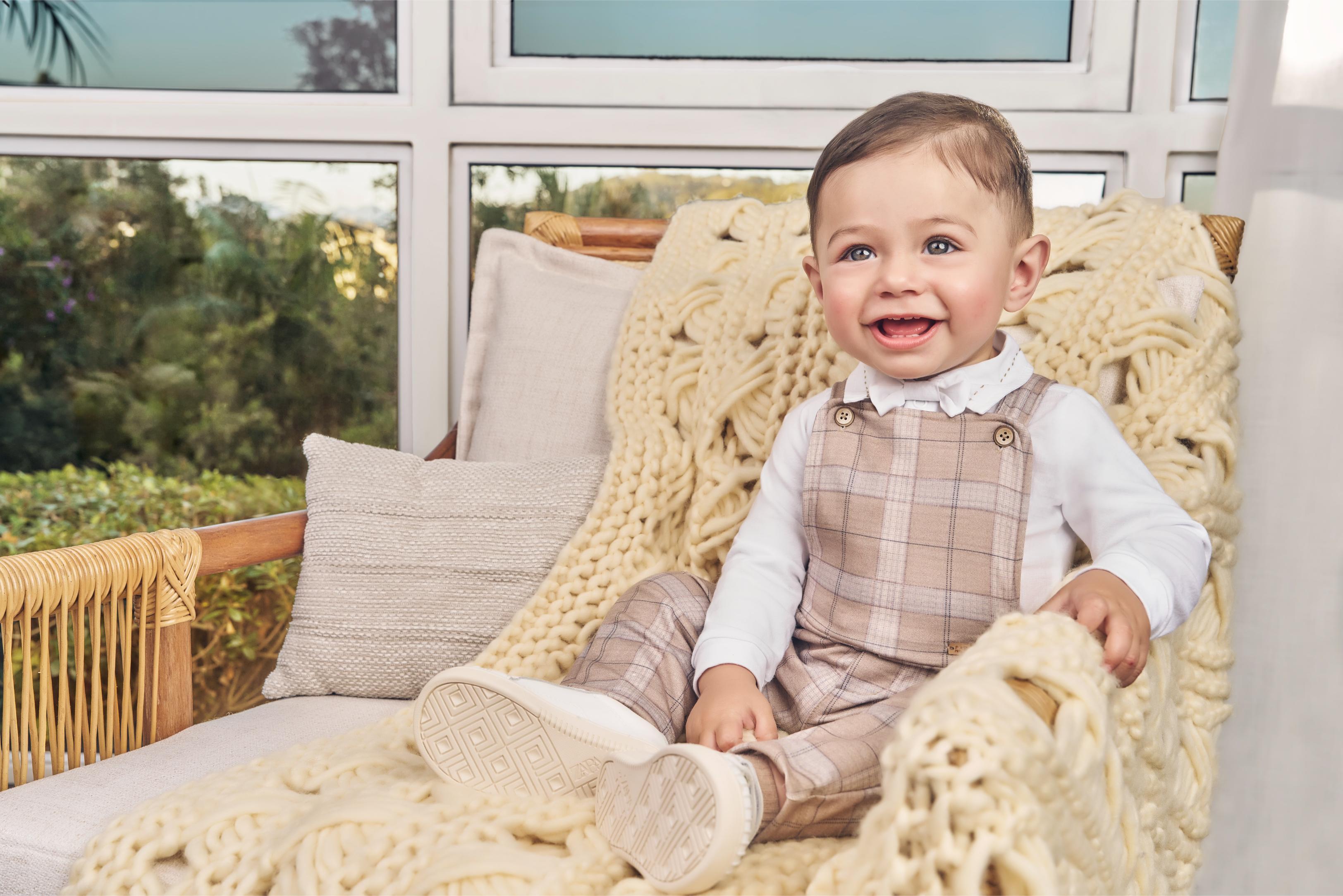 O Conjunto de Macacão Jardineira e Body Manga Longa combina conforto e sofisticação para um look arrumadinho e moderno. A jardineira em moletinho xadrez leve tem toque macio e suave.