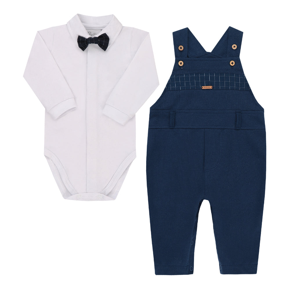 Conjunto Macacão Longo Malha Texturizada com Body Manga Longa e Gravata Removível Paraiso 17718