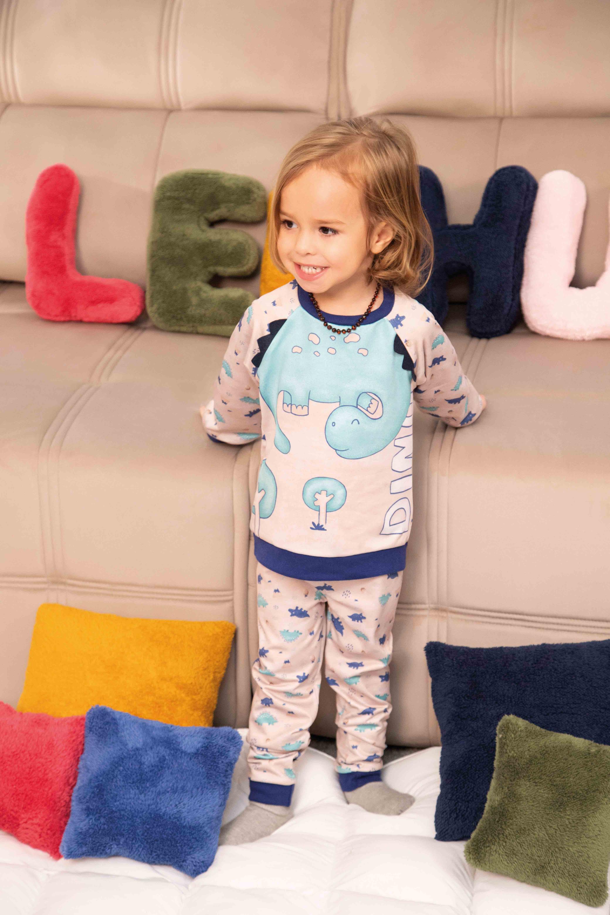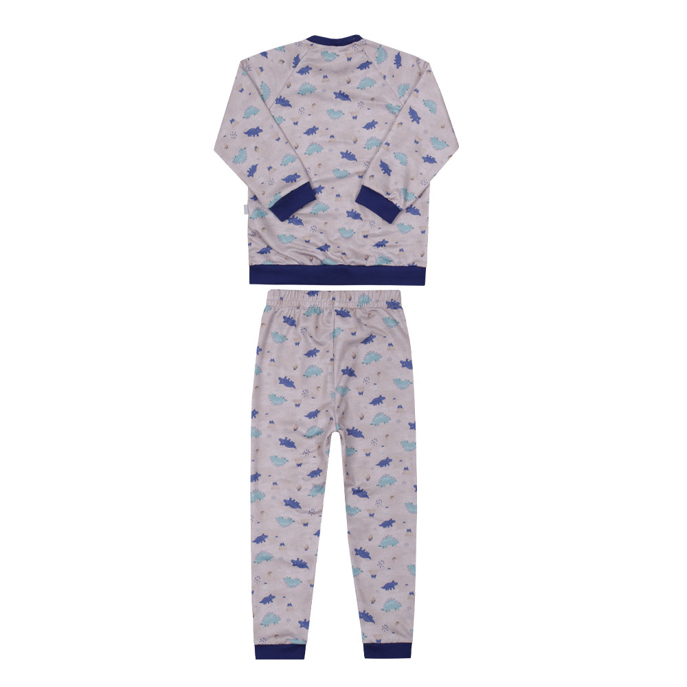 Introduzindo o Conjunto Pijama de Inverno Masculino da Le Bhua, uma peça essencial para manter seu filho aquecido e alegre nas noites frias. Disponível em cores bege e azul marinho, este conjunto é feito em malha ultramicro thermo estampada, com uma composição de 89% poliéster e 11% elastano, garantindo não apenas calor, mas também flexibilidade e conforto. O design inclui punhos, barra, gola e cós de ribana, com o cós da calça ajustável por elástico. A blusa destaca-se com mangas e costas em uma estampa unificada, enquanto a frente apresenta uma estampa divertida de dinossauro, tornando o conjunto uma opção lúdica que seu filho vai adorar. Ideal para as noites de inverno, este pijama é perfeito para sonhar com aventuras jurássicas em conforto.