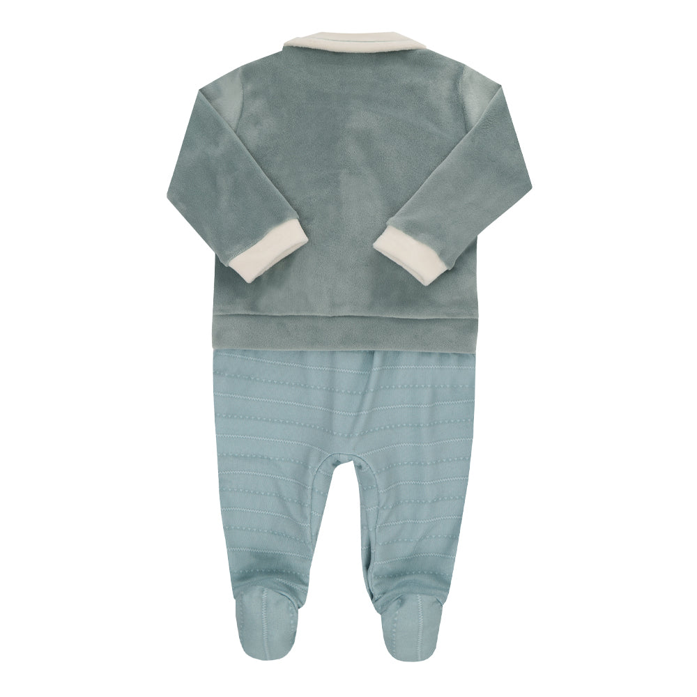 Kit Macacão Longo Malha Tricô Estampada e Casaco Plush Quentinho Paraiso