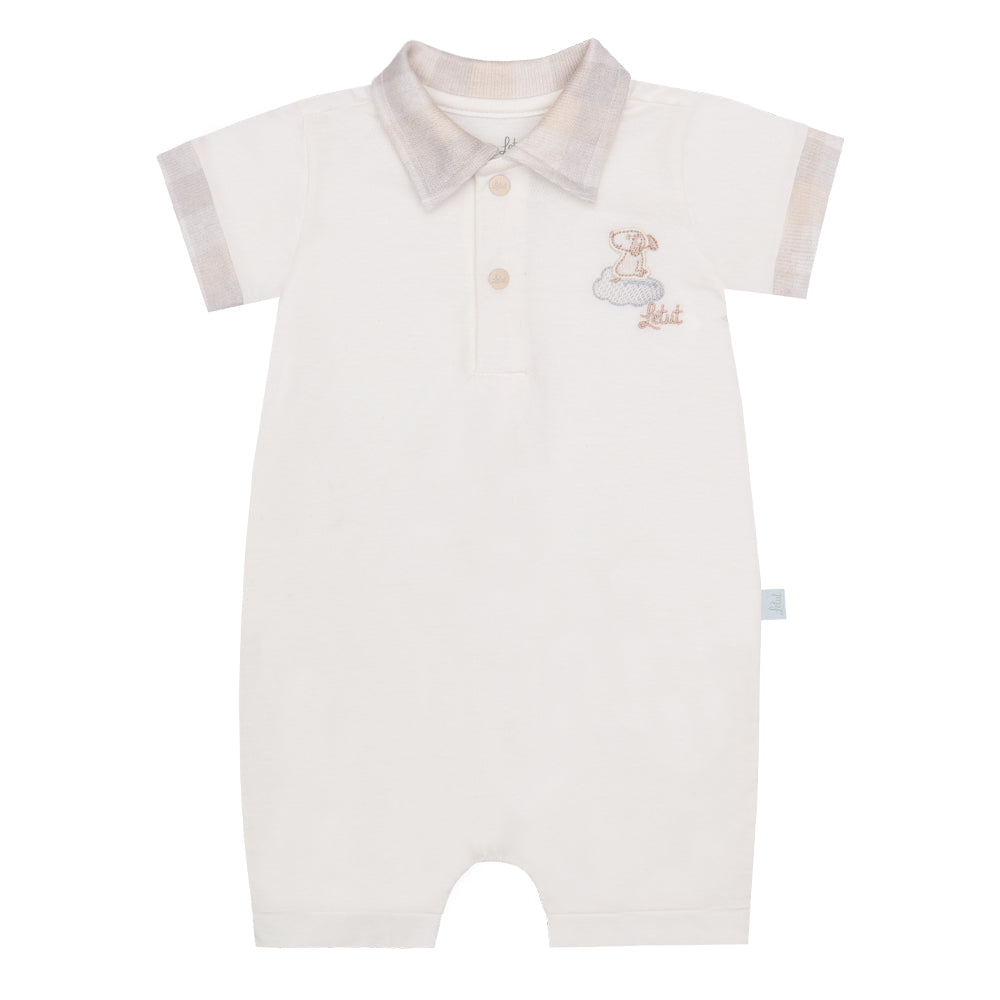 O Macacão Curto Verão Masculino Letut é perfeito para deixar seu bebê lindo e confortável. Feito em malha fio 30 com detalhes em malha ribana dolly, este macacão possui gola polo, gola e punhos em ribana estampada. A abertura de tic no fundo e o bordado na frente adicionam charme e praticidade, tornando-o ideal para o dia a dia.