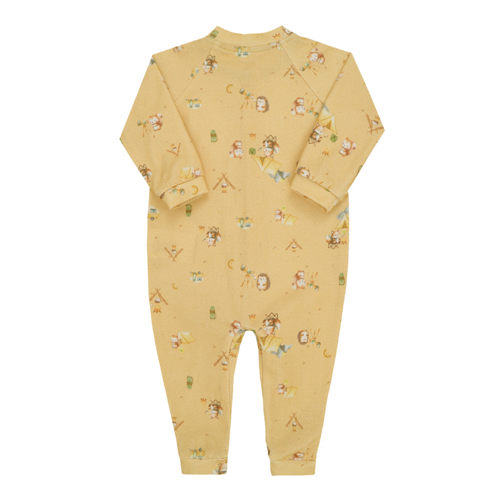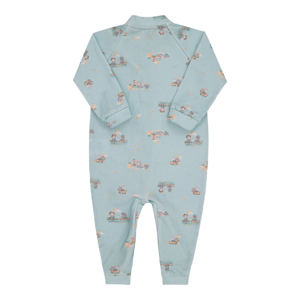 Macacão longo com modelagem confortável em malha estampada, toque macio e leve elasticidade. Possui abertura prática com botão de pressão e etiqueta personalizada. Ideal para lazer e dia a dia.