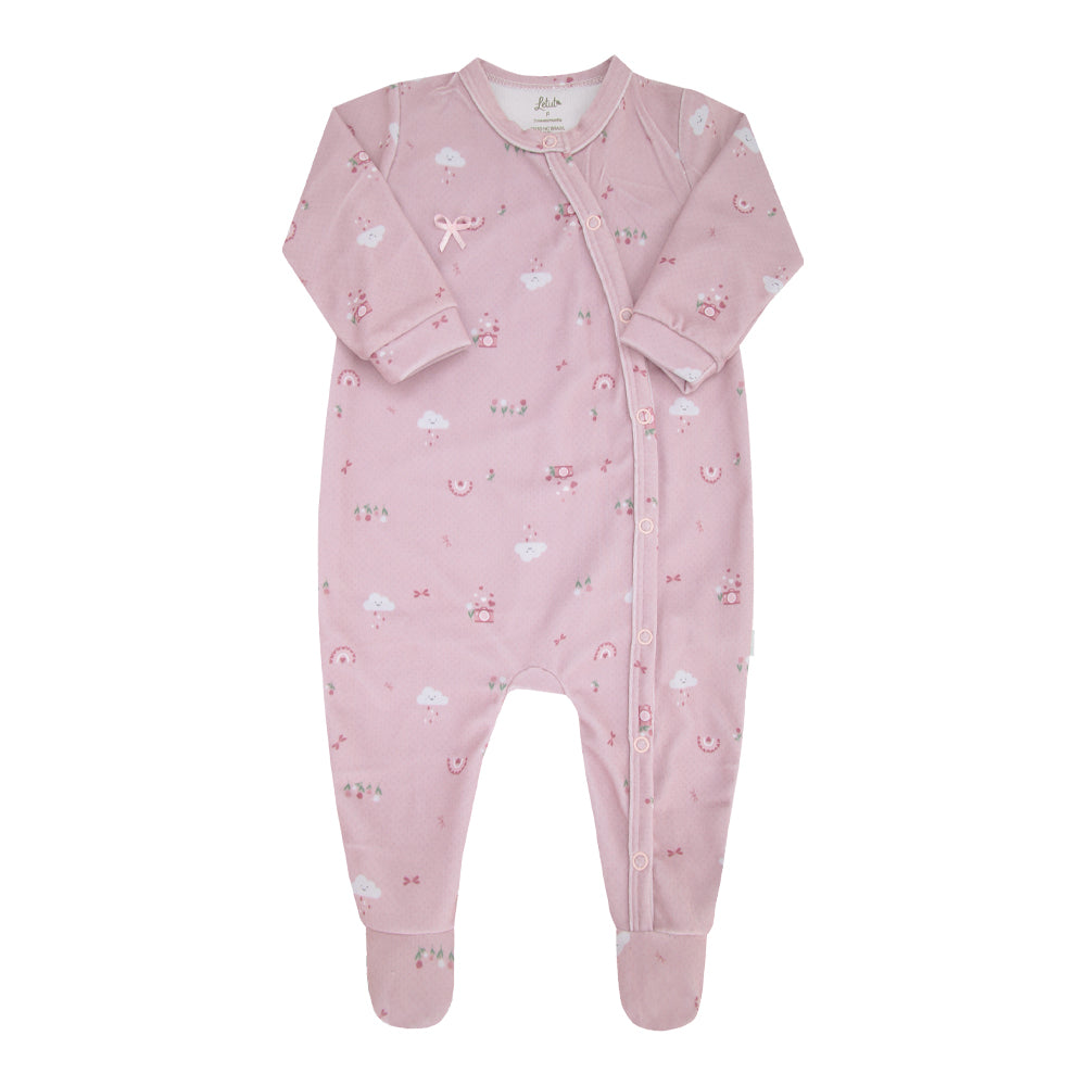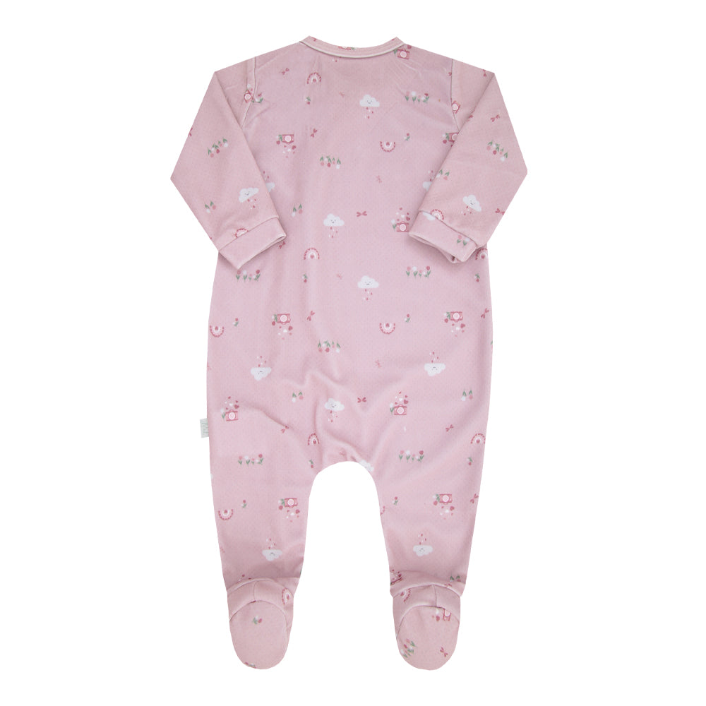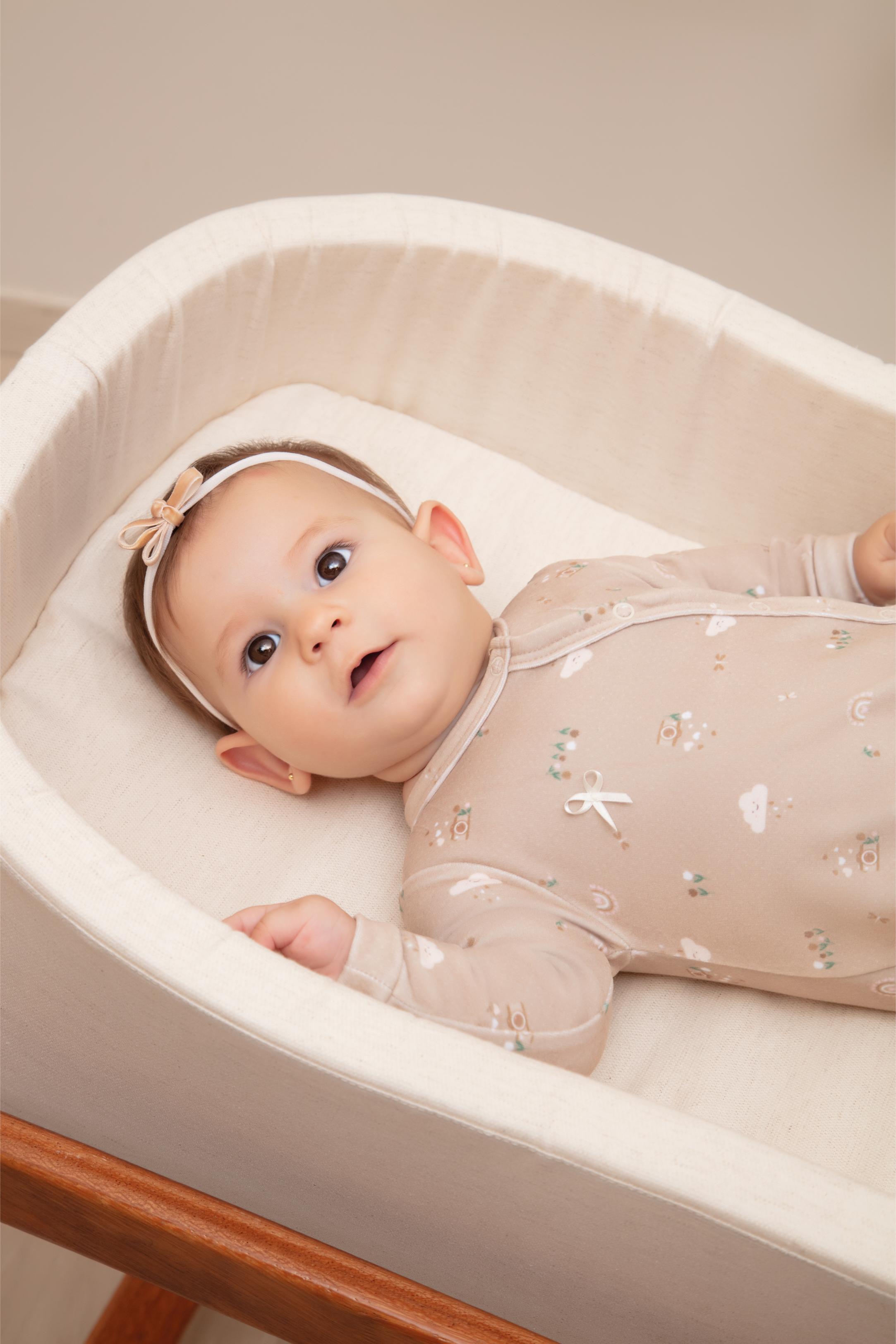 Confeccionado em plush estampado super macio e aveludado, oferece um caimento aconchegante e um toque suave para a pele sensível do bebê. O design encantador conta com um lacinho em fita de cetim no peitinho, deixando o look ainda mais charmoso.