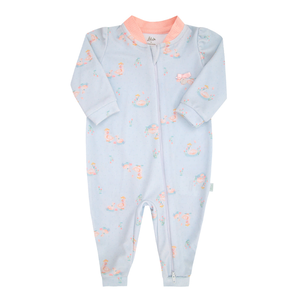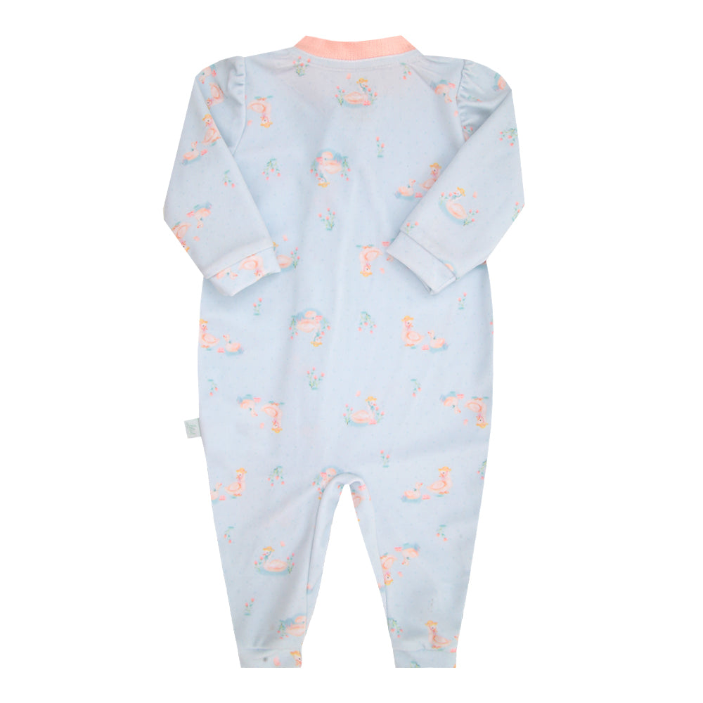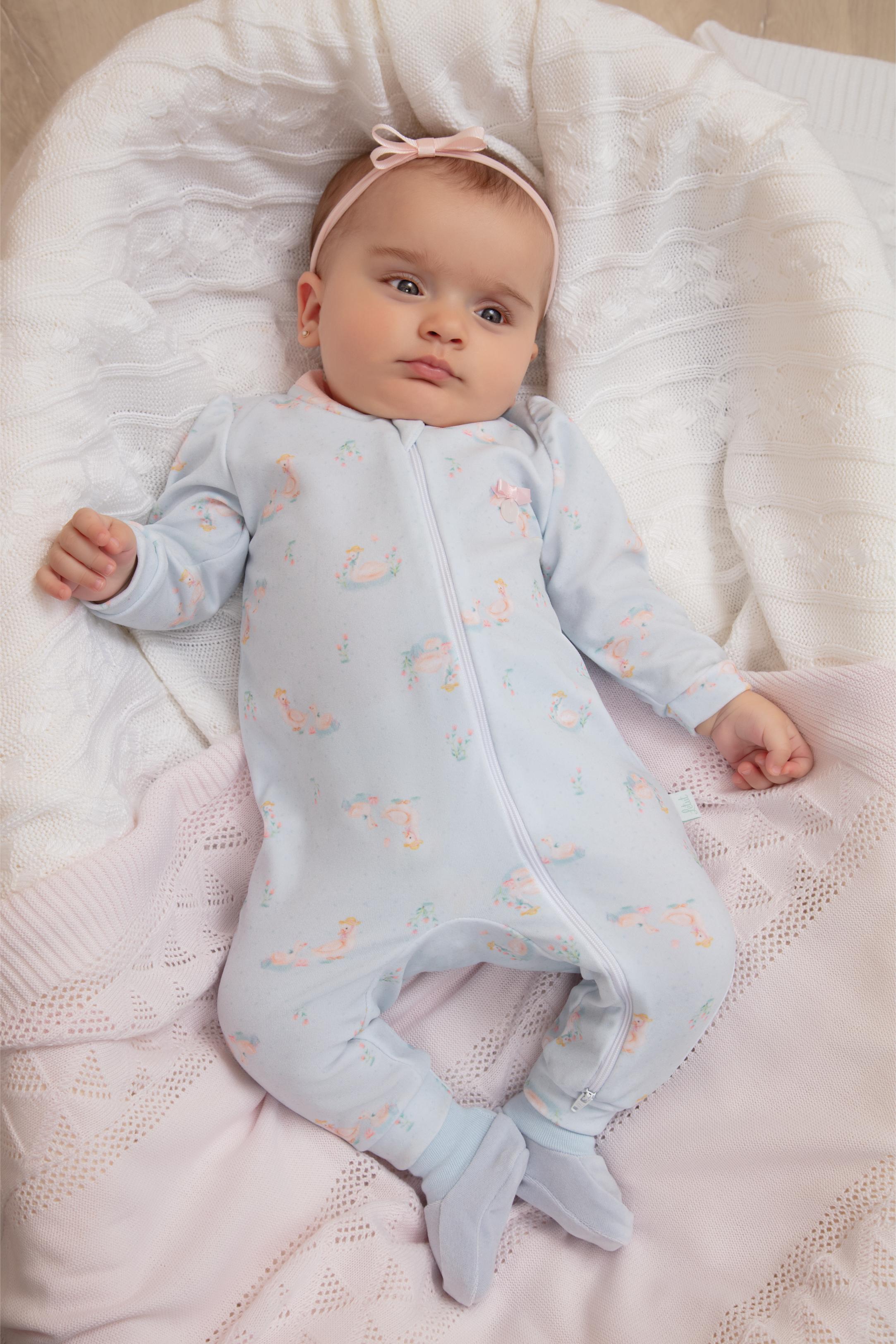 A abertura frontal por zíper com cursor duplo facilita na hora de vestir e trocar, enquanto o protetor de zíper evita incômodos na pele sensível da bebê. A gola em malha trabalhada completa o visual com um acabamento refinado. Disponível nas cores Tiffany Claro e Amarelo Pastel, esse macacão é ideal para momentos de lazer e passeios.