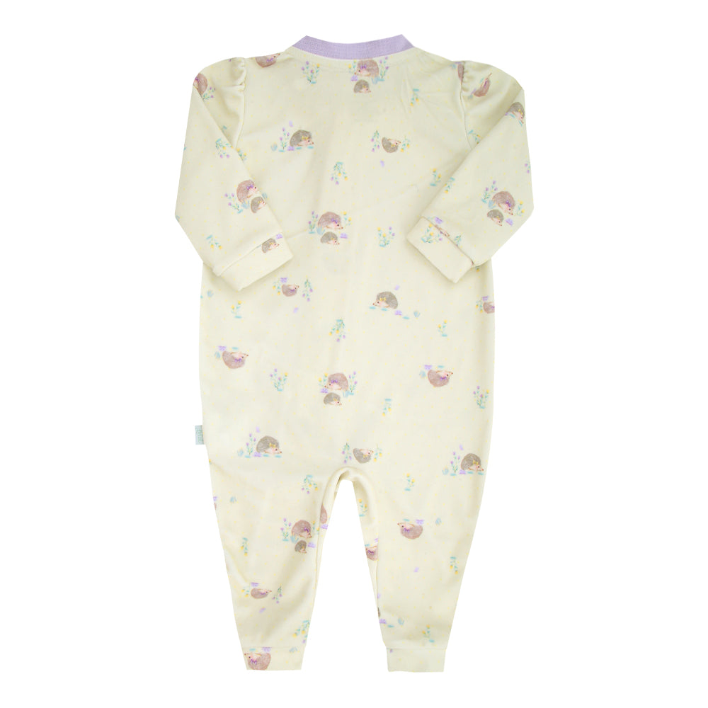 Feito em plush estampado super macio e aveludado, esse macacão oferece um toque suave e aconchegante à pele delicada do bebê. O design conta com mangas levemente franzidas, que dão um toque romântico ao look, e um delicado lacinho em fita de cetim com pingente personalizado da marca.