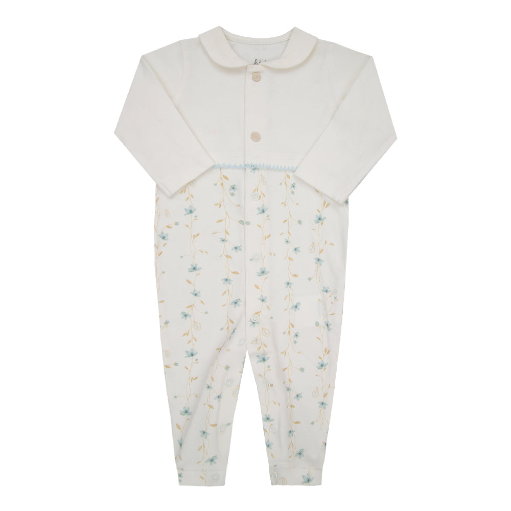 Macacão Longo Letut Baby Estampado com Detalhe Crochê e Conforto