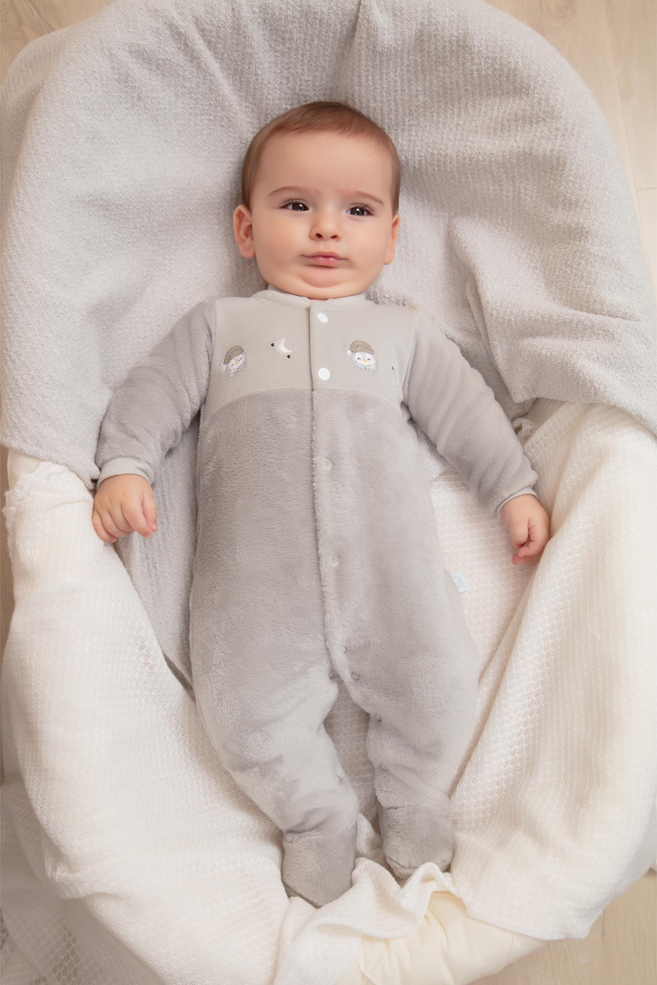 Feito em pelo super macio, quentinho e aveludado, proporciona um toque fofinho e aconchegante à pele delicada do bebê. Seu design inclui bordado delicado na frente, gola e punhos em ribana, além de pezinho revestido em pelo, garantindo um ajuste confortável e maior proteção térmica.