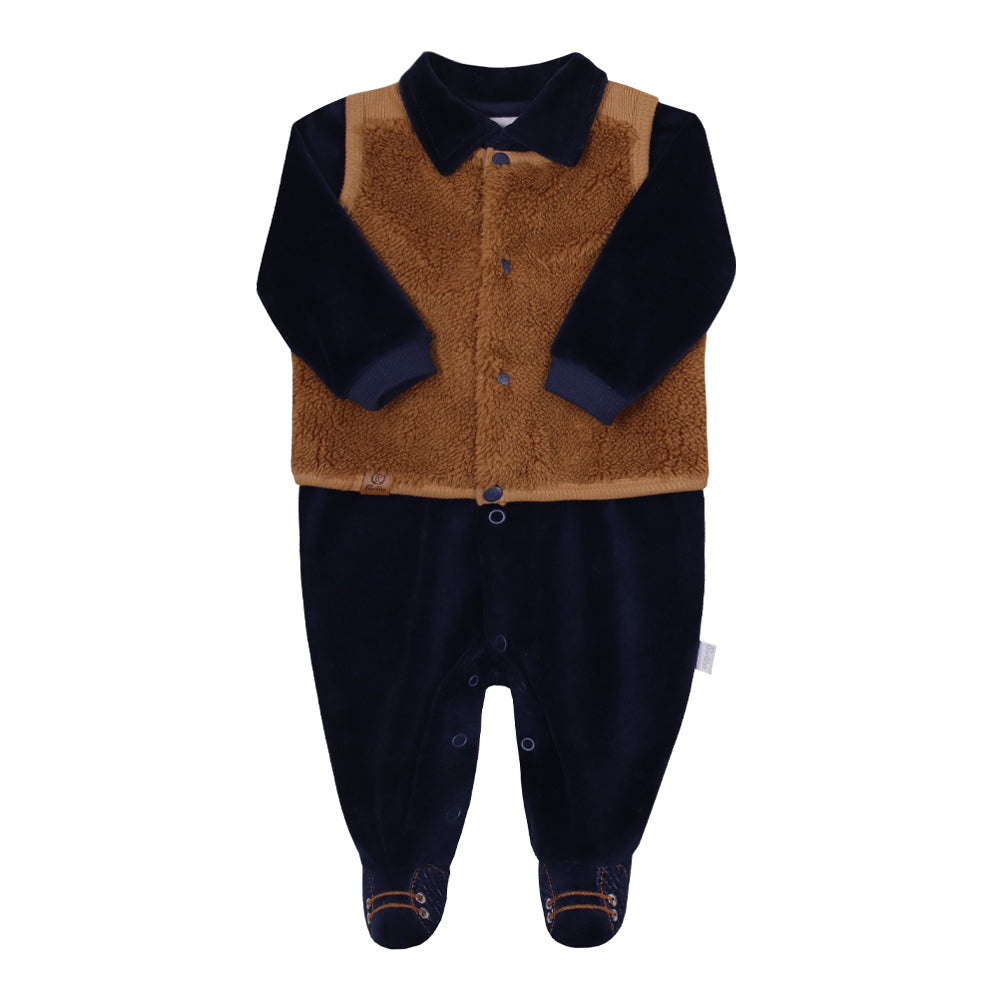 Macacão Longo Plush com Colete Pelo Carneirinho Elegante Paraiso 16075