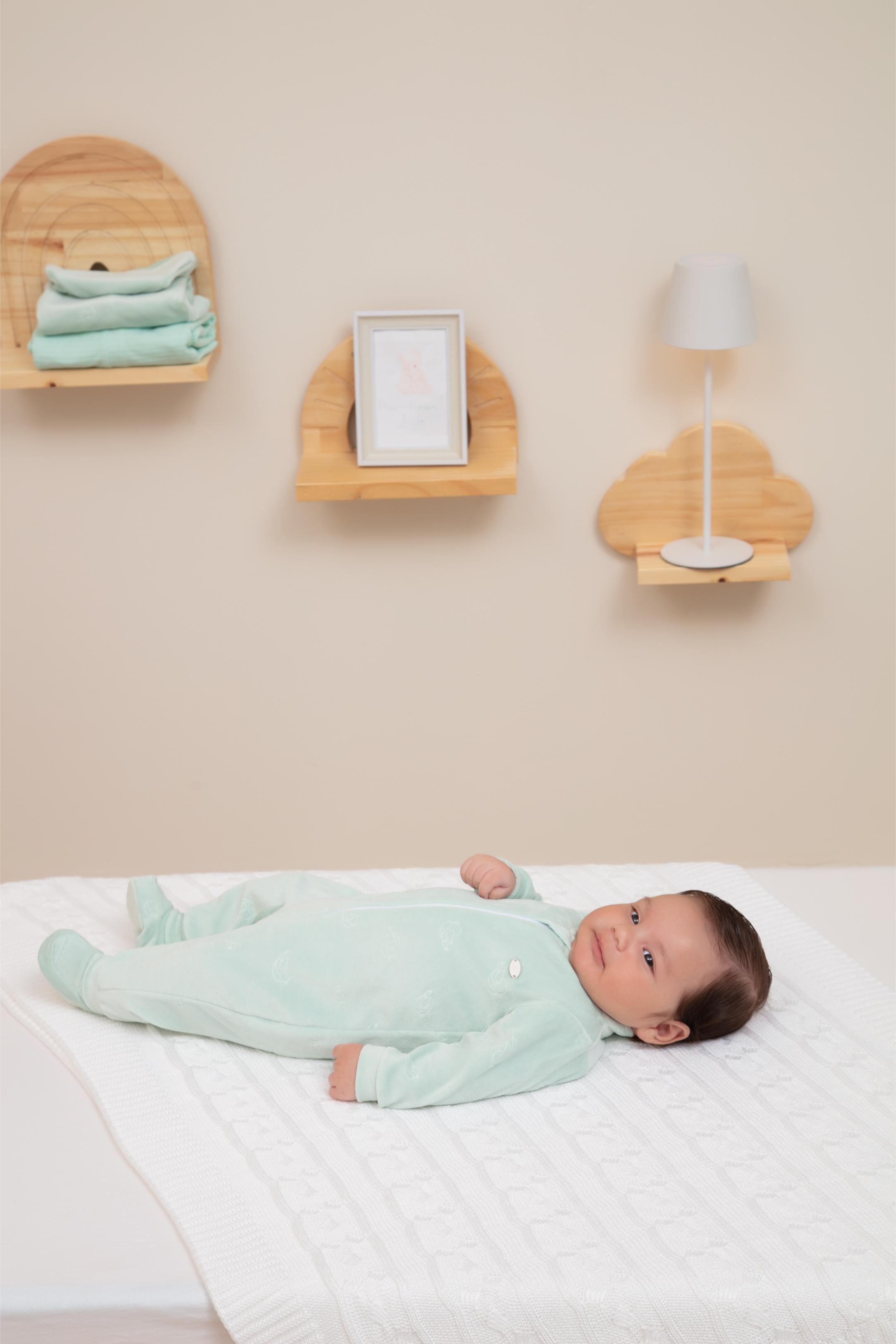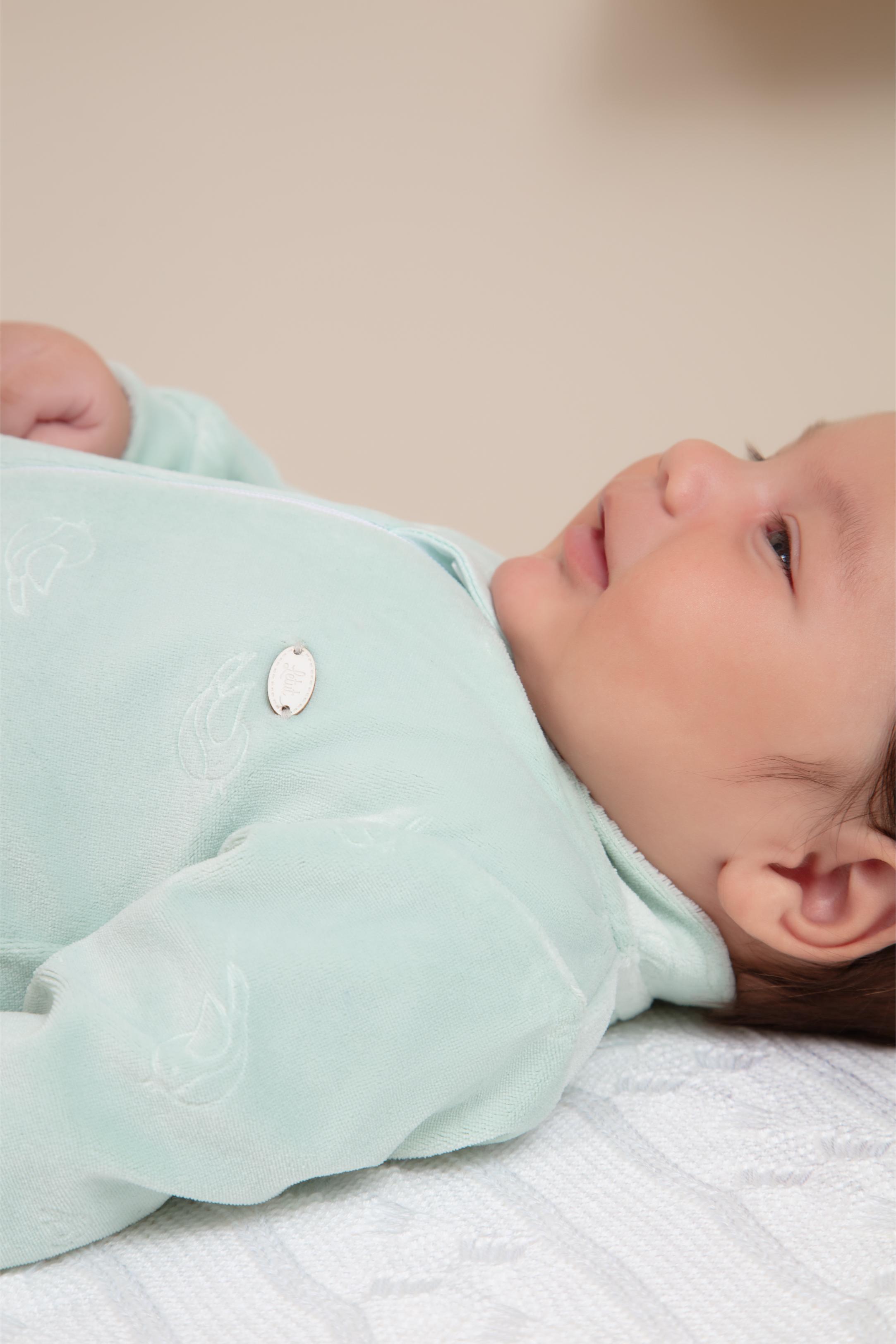 Confeccionado em plush jacquard personalizado da marca, o tecido oferece um toque aveludado, super macio e aconchegante. O forro 100% algodão proporciona ainda mais conforto, cuidando da pele delicada do bebê.