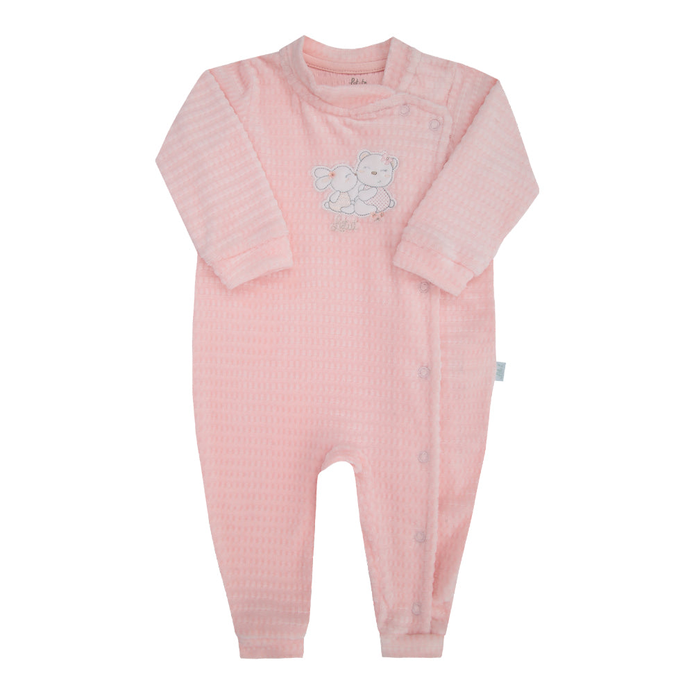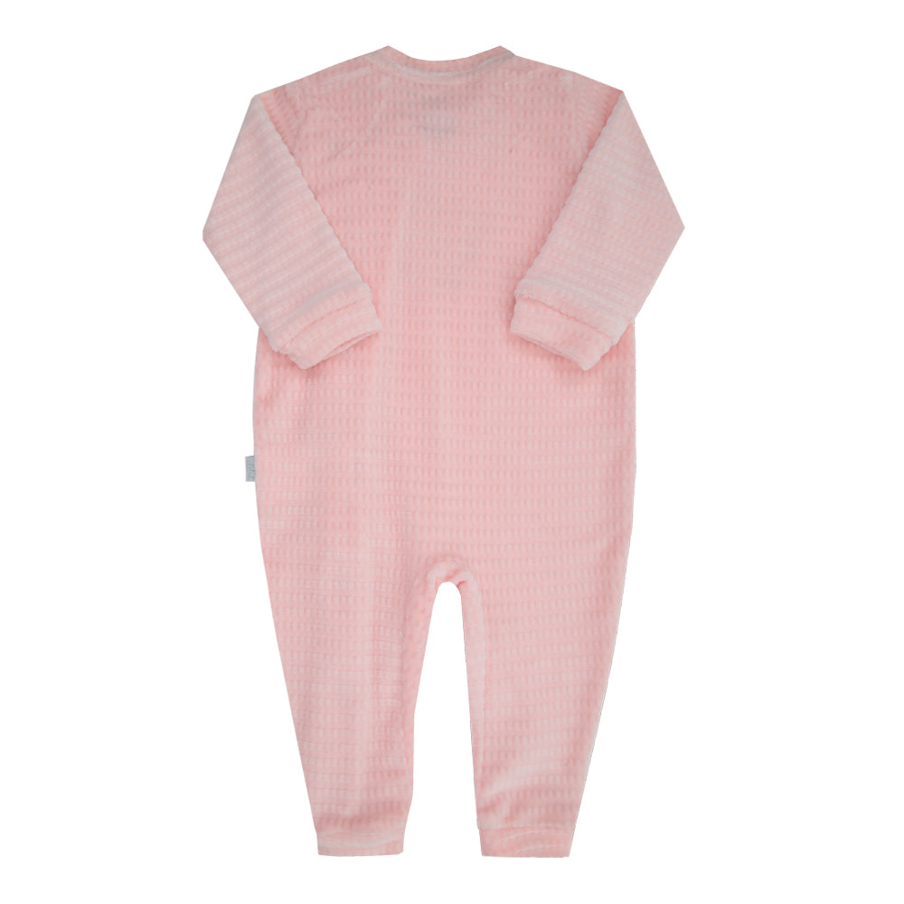Confeccionado em plush jacquard quadriculado texturizado em relevo, esse macacão oferece um toque super aveludado, macio e suave, garantindo máximo aconchego para a pele delicada do bebê. O design sofisticado é complementado com detalhes bordados lúdicos, trazendo um charme extra ao look.