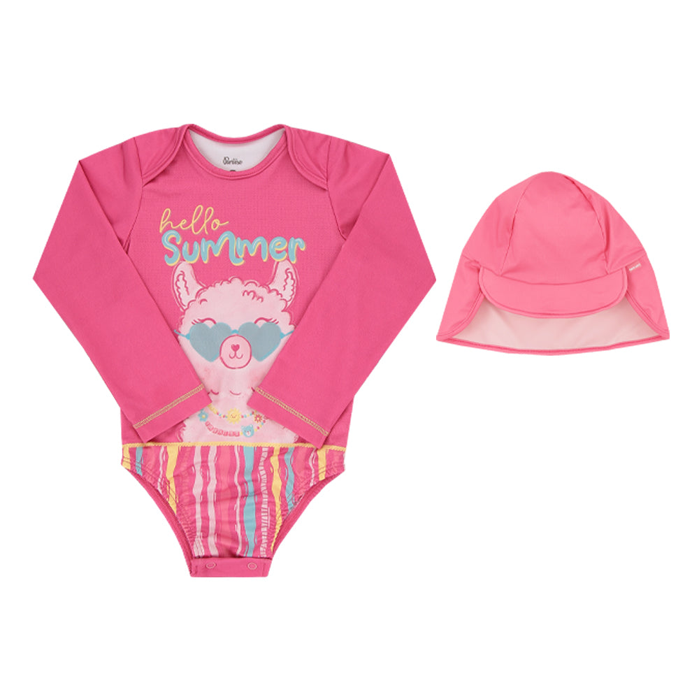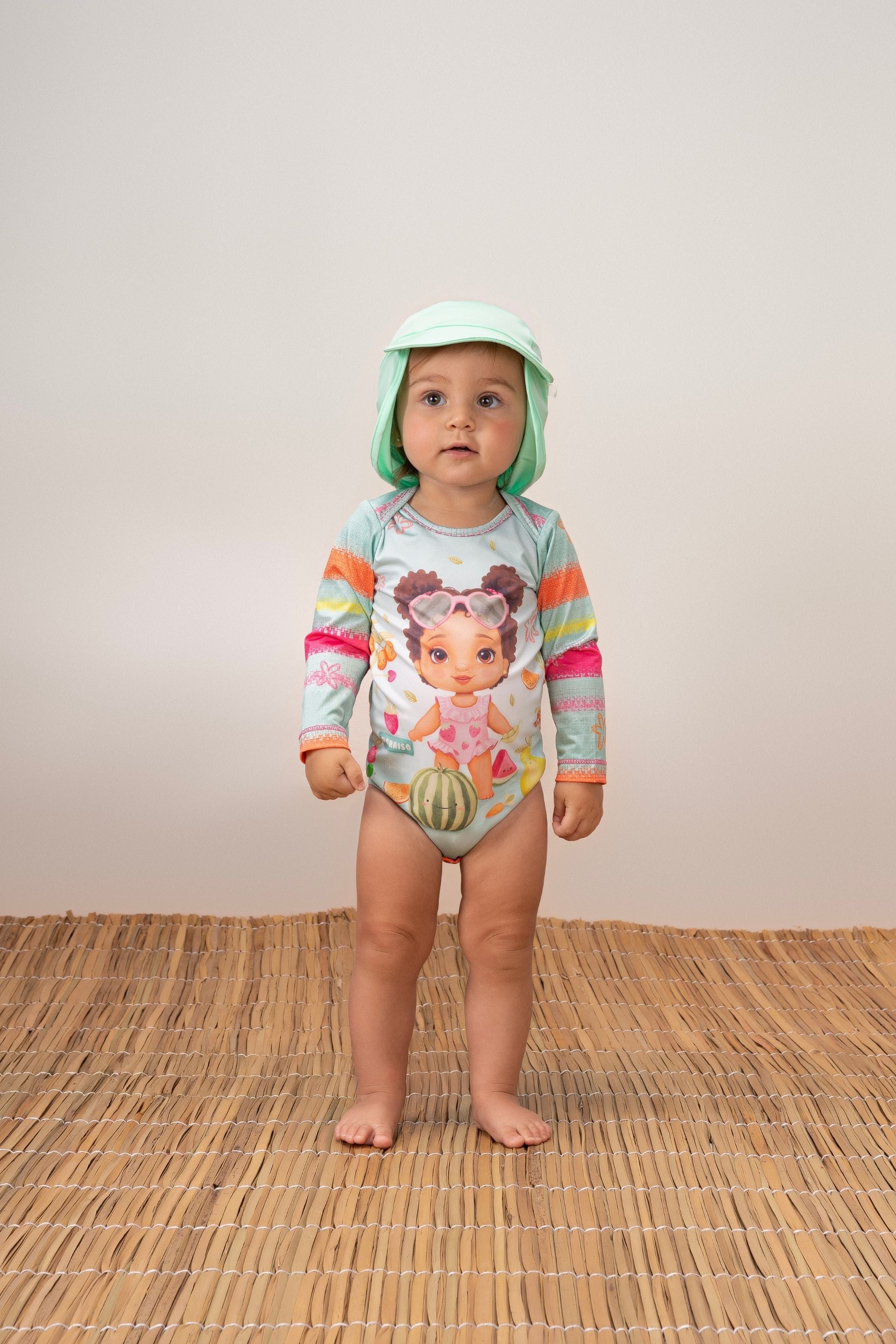 - Item: Maiô Manga Longa com Chapéu UV50+ Praia Feminino Paraiso Infantil