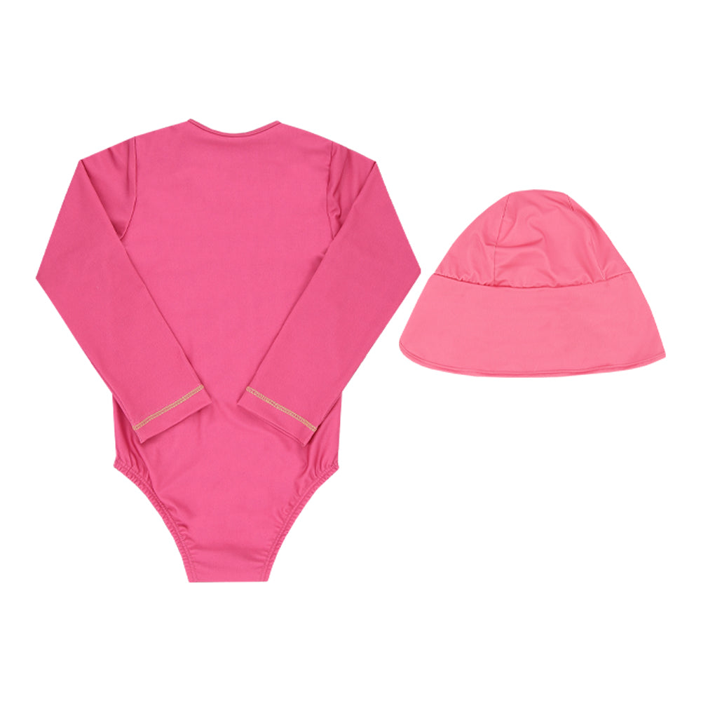 Maiô Manga Longa com Chapéu UV50+ Praia Feminino Paraiso Infantil