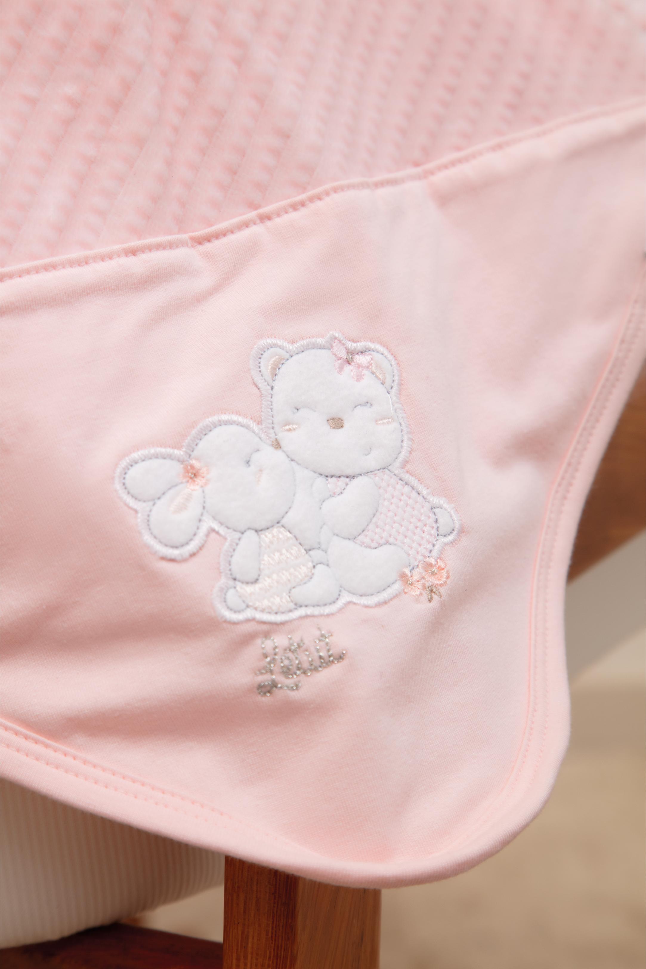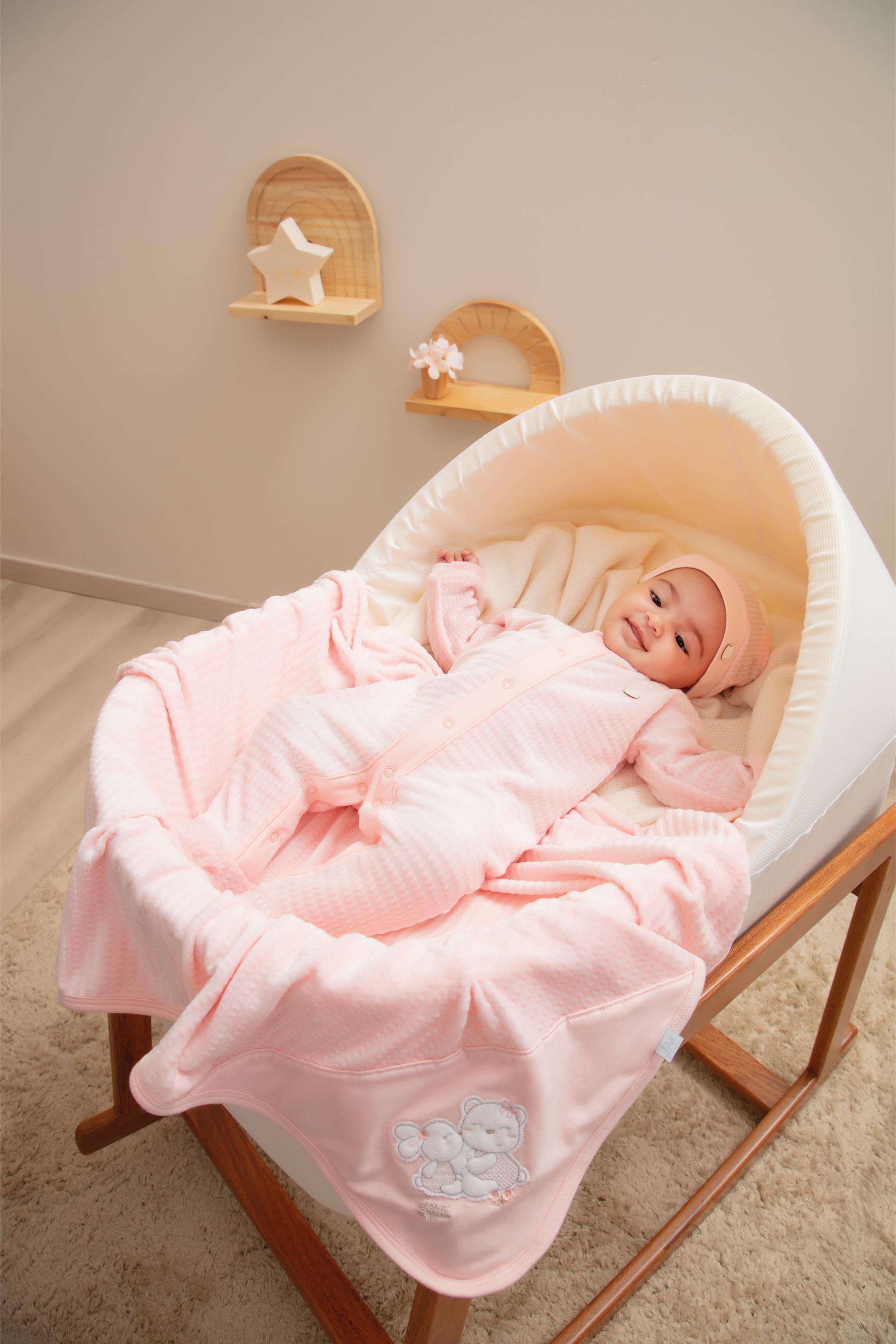 Com tamanho ideal de 80x80 cm, é perfeita para o uso diário, seja para acompanhar o bebê no berço, carrinho ou em momentos de colo. Além disso, sua textura quentinha e o acabamento sofisticado garantem um toque de elegância ao enxoval do bebê.