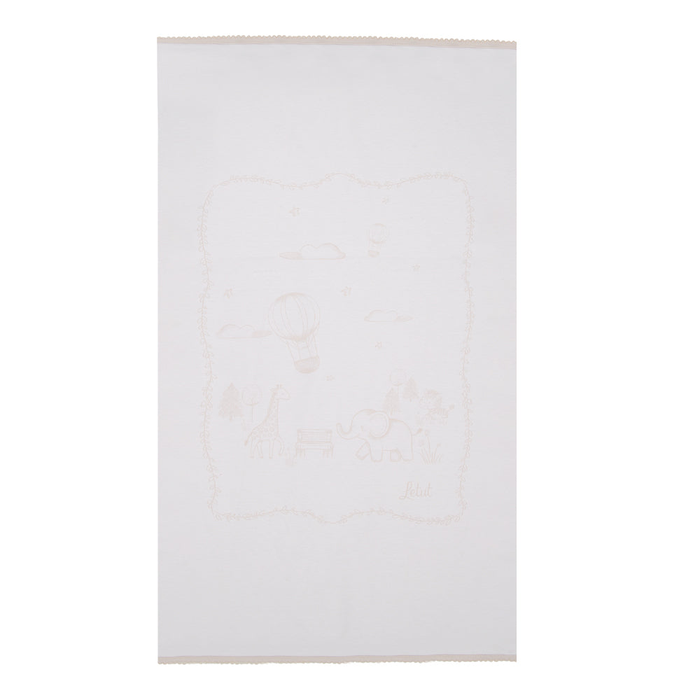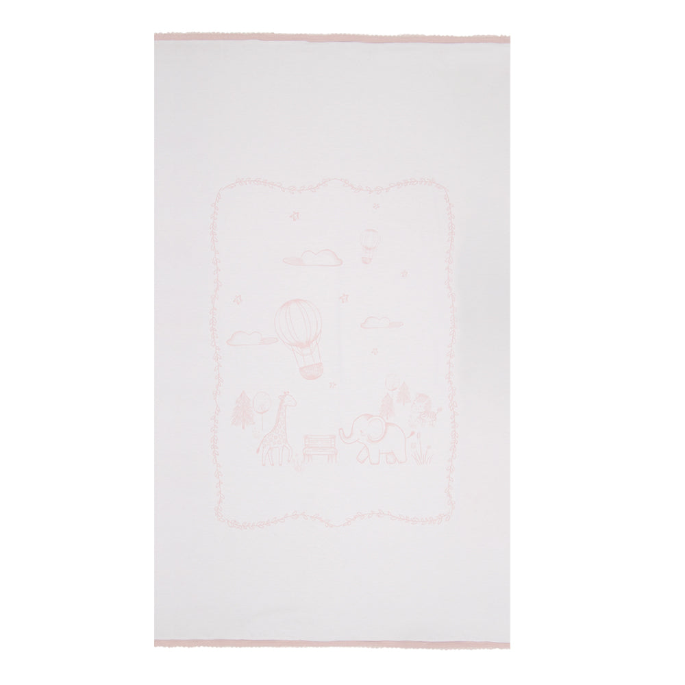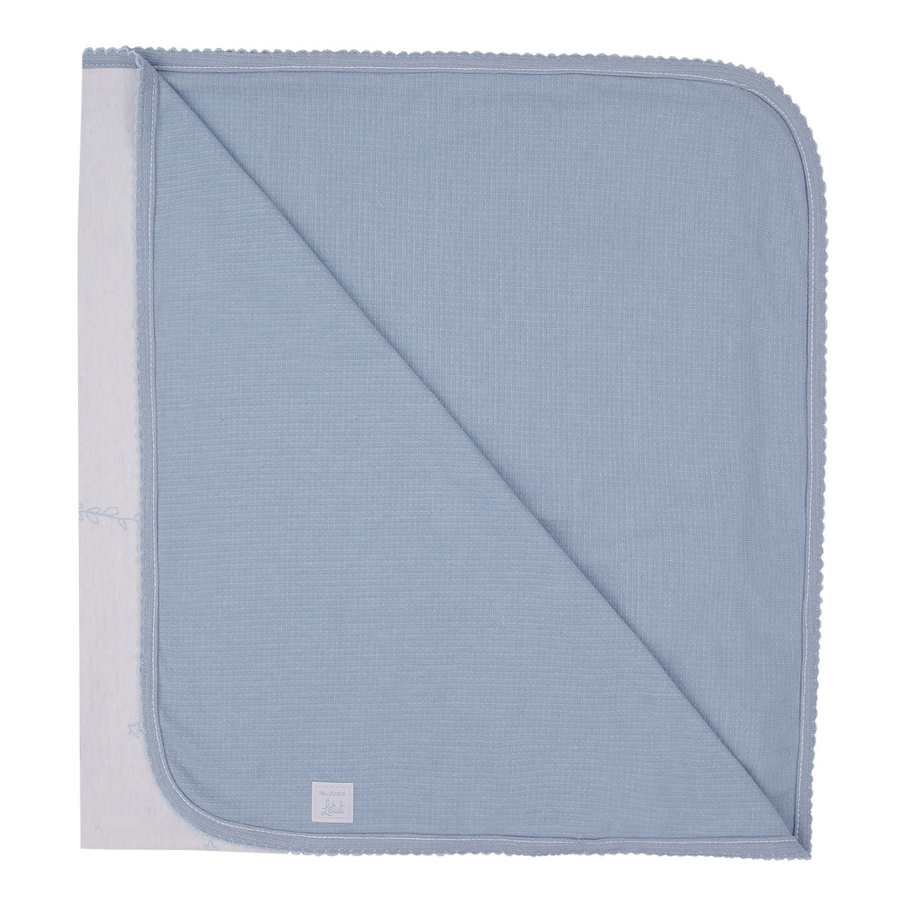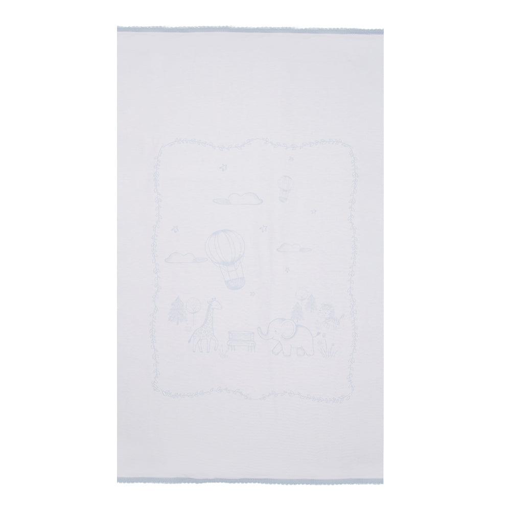 Manta dupla face longa com forro, toque suave e confortável, estampa localizada, acabamento em picueta efeito crochê e etiqueta personalizada. Versátil, protege e proporciona bem-estar ao bebê.