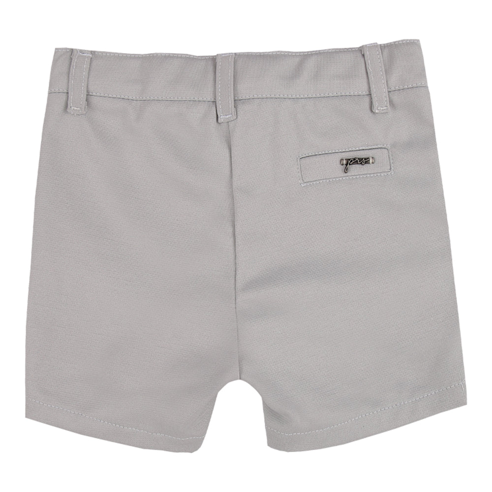 Shorts curto com modelagem tradicional, confeccionado em malha roma leve e confortável. Possui cós elástico regulável, abertura com botão, recortes laterais efeito bolso e plaquinha personalizada.
