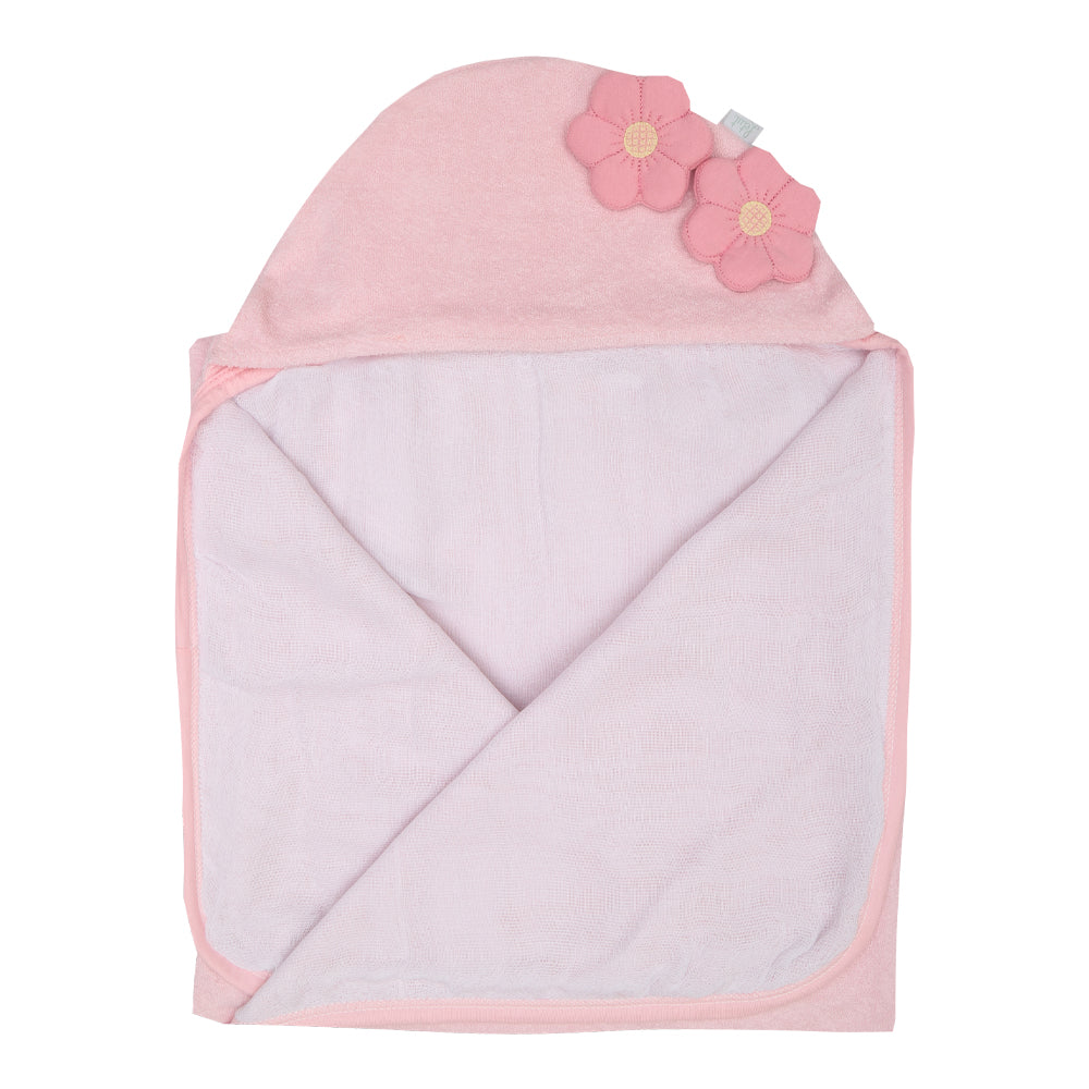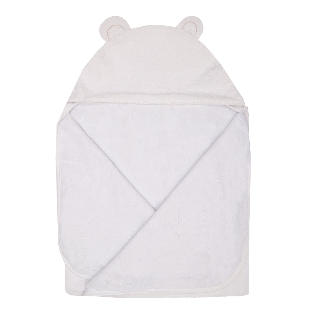 Toalha de banho felpada com capuz bordado, confeccionada em malha atoalhada macia e forro 100% algodão. Oferece alta absorção, conforto e delicadeza, ideal para a pele sensível do bebê.