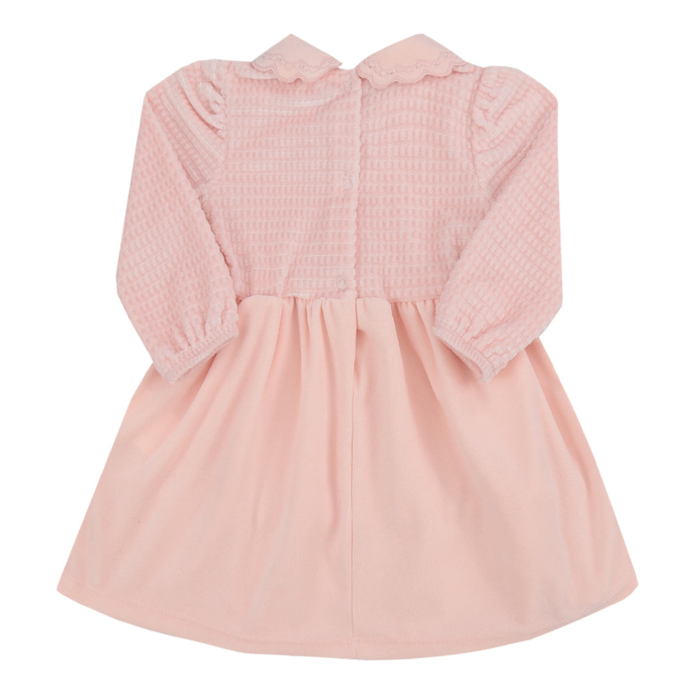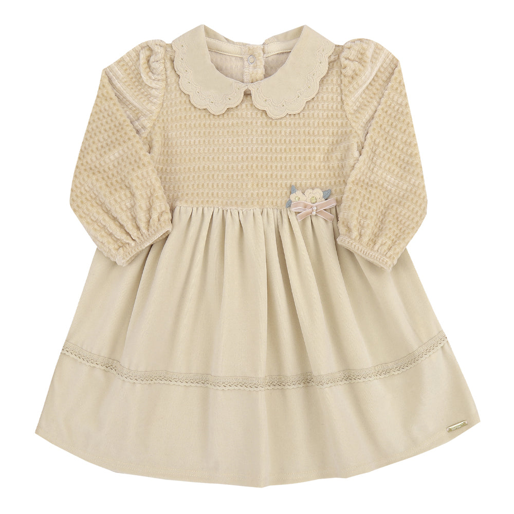 Vestido Plush Quadriculado e Liso com Gola Bordada, Laço de Veludo e Aviamento Sobreposto Paraiso