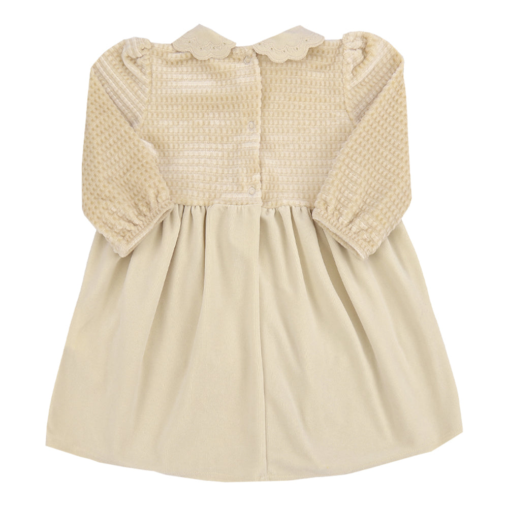 O Vestido em Plush Quadriculado e Liso é uma peça elegante e sofisticada, perfeita para os dias frios. Confeccionado em plush super macio e aveludado, proporciona conforto e aconchego. A parte superior em plush quadriculado levemente texturizado traz um charme especial, enquanto a saia em plush liso bem franzido garante um caimento delicado e fluído.